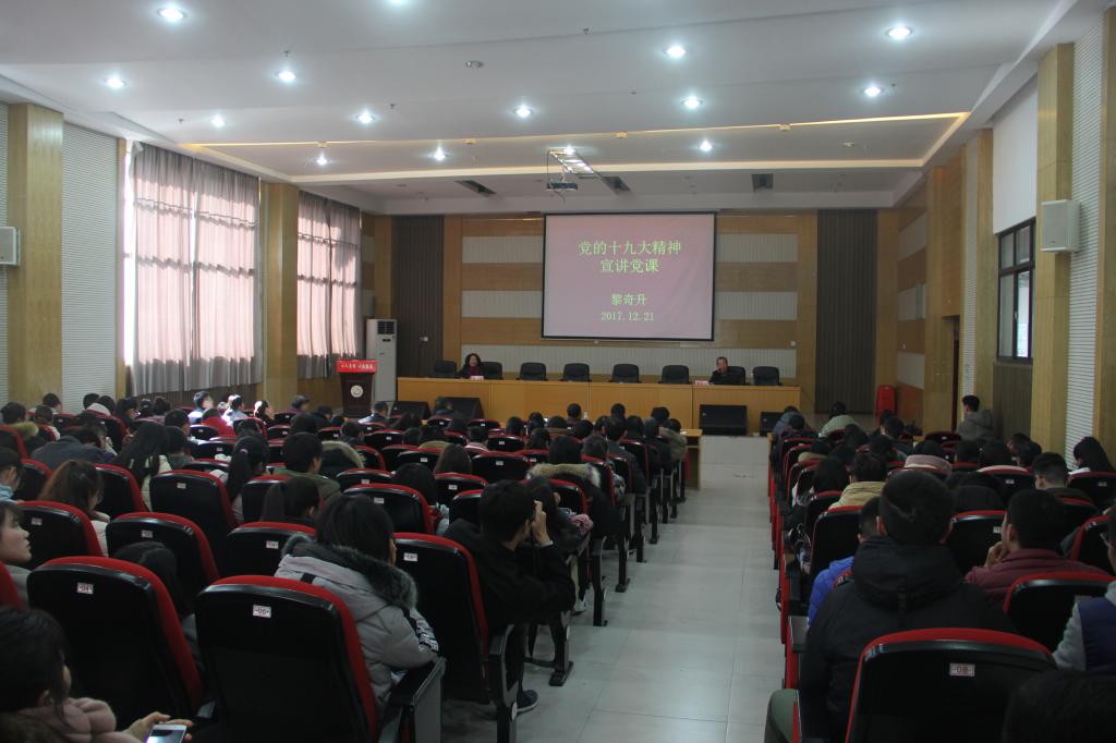 本网讯(李继红)12月21日,为学习宣传贯彻党的十九大精神热潮,校党委委员、副校长黎奇升到大田湾学术报告厅,为英国威廉集团200余名师生党员讲专题党课,宣讲党的十九大精神。