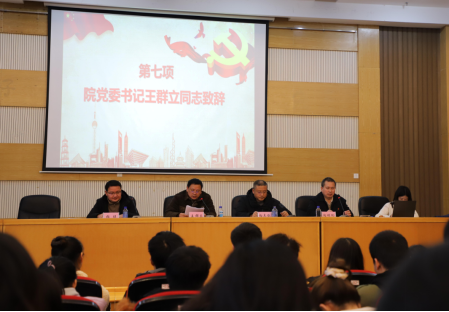 会议最后,院党委书记王群立同志代表院党委向新党员表示衷心的祝贺和热烈的欢迎。对所有新老党员提出以下要求,一要恪守入党誓词。以一名共产党员的标准严格要求自己,并终身为之奋斗。二要发挥模范作用。在各自的工作学习岗位上起到带头作用,彰显党的先进性。三要坚定理想信念。要做到把个人成才与社会价值相结合,把远大理想与奋斗目标相结合,把坚持理想信念与贯彻执行党的路线方针相结合,坚定人生道路的航塔。四要牢记党的宗旨。“共产党员”这几个字庄严而神圣,我们要担起这几个字的份量和责任,时刻牢记党全心全意为人民服务的宗旨,强化服务意识,为师生工作排忧解难。各位同志一定要牢记自己的党员身份,爱岗敬业、奉献进取,志存高远,胸怀宽广,以良好的精神状态,充足的干劲,为党和国家建设发展努力奋斗,为学院的建设发展出谋划策,以优异的成绩向党组织交上一份满意的答卷。