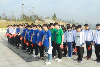 全体人员集体瞻仰“烈士纪念碑”,面向纪念碑默哀、鞠躬。