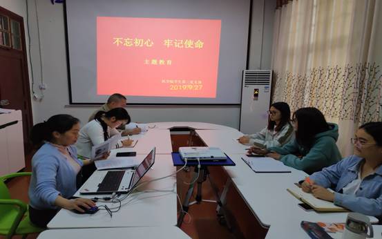 最后,向明钧书记就如何落实好不忘初心、牢记使命主题教育学习效果做了总结。支委会委员郭梦瑶老师、张惠娟老师纷纷表示会带头学习,深入贯彻落实不忘初心、牢记使命主题教育精神。