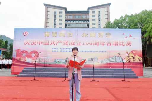 王艳在比赛开始前的致辞中肯定了此次活动的意义与价值——是推动党史学习教育的一种生动方式,千余名学子将用自己的青春之声,让一曲曲历久弥新的红色经典歌曲唱响校园,缅怀党的历程,追忆峥嵘岁月,赓续红色基因。她要求全体医学生增强历史意识,深刻地理解“中国共产党为什么能,马克思主义为什么行,中国特色社会主义为什么好”,进一步涵养医学情怀,坚定报国之心。并希望同学们能深刻领悟中国共产党在领导抗击疫情中坚持“人民至上,生命至上”的理念,要在红色歌曲传唱,党史学习教育过程中,感受前辈们的奉献精神;在未来的工作中,践行“健康所系,性命相托”的医学初心,努力为新时代的中国卫生健康事业添砖加瓦,贡献自己的力量。