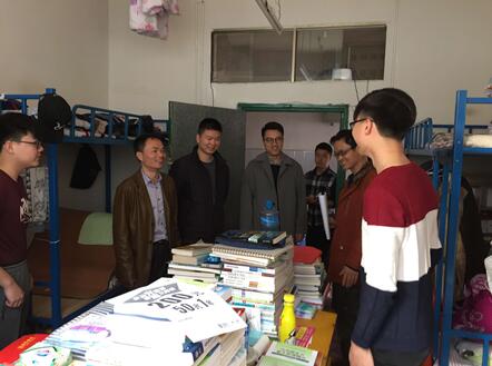 (丁晓岚)2月25日16点,学院党委书记陈正英、副院长向志钢、副书记王元、副院长秧茂盛、副院长沙永红、院长助理李先辉、院长助理李中正来到宿舍,亲切问候学生,学院全体辅导员陪同。