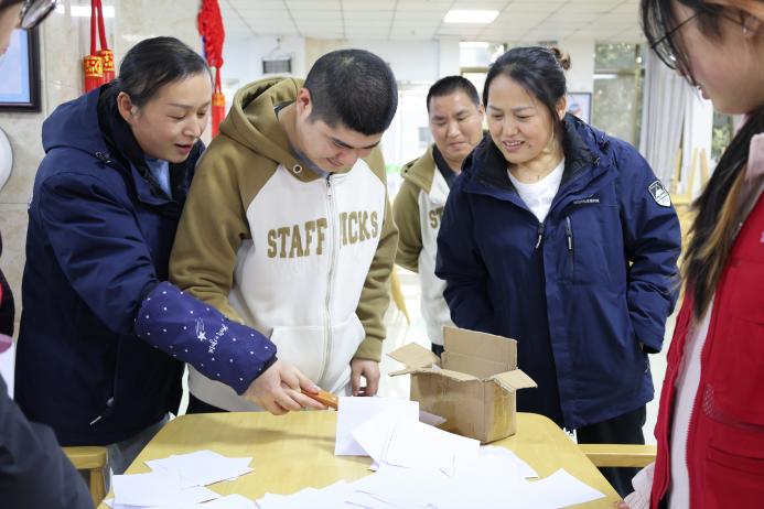 此外,儿童组和青年组的志愿者们同福利院工作人员交流了解了孩子们的生活情况和身心健康情况后,走入教室,协助特教老师开展生动有趣的文娱活动。志愿者手把手教他们竹扇、中国结的制作,鼓励他们运用彩泥大胆创作,激励大家进行简单的游戏活动,以实际行动为孩子们带去更多的笑容与希望。