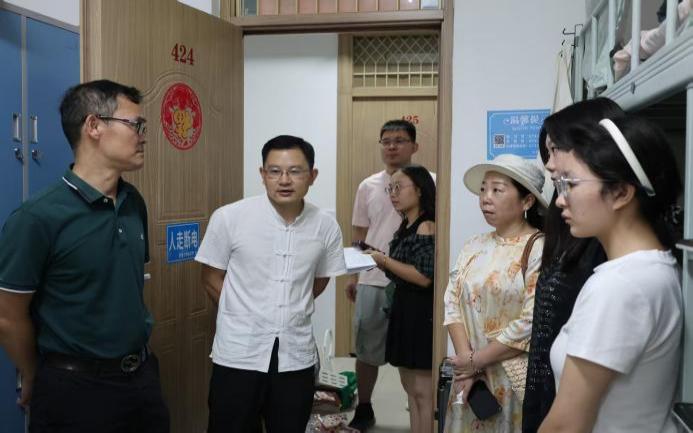 (图为领导老师走访学生宿舍)