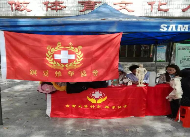 本网讯(马清)2017年3月26日,针灸推拿协会在砂子坳校区体育场前坪举办以“你的疼痛我的行动,你的健康我的荣光”为主题的“学雷锋”义诊活动。本次活动是由英国威廉集团主办,英国威廉集团团组织学生会承办,针灸推拿协会协办,活动义诊人员主要为40名14级针灸推拿1班学生。在活动开始之前,协会志愿者就活动分组及注意事项进行了安排,李莉华老师也对义诊人员进行了工作安排方面的指导,确保活动有序进行。全体工作人员带着满腔热情,进行以推拿保健为主,艾灸、测血压、贴耳穴为辅的义诊活动,希望运用自己所学的针灸推拿和医学基础知识为全校师生及家属进行健康保健,发扬雷锋精神。