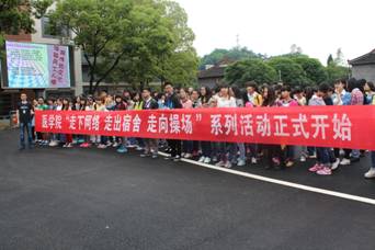 开幕式伊始,在主持人介绍完参加开幕式的嘉宾之后,院学生会主席周丹、副主席喻丹丹分别宣读了此次活动倡议书并介绍活动内容,最后由团总支副书记卢春霞宣布我院2014年“走下网络,走出宿舍,走向操场”三走系列活动正式开始。
