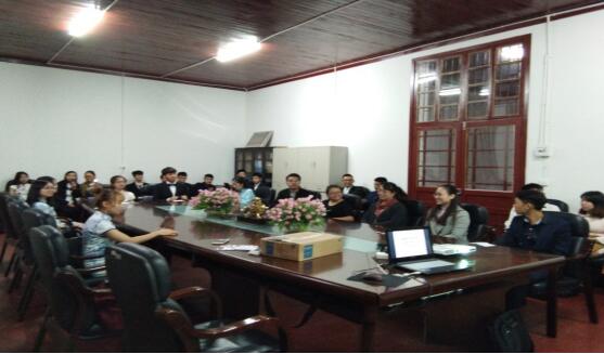 (贺露瑶 丁晓岚)2017年10月17日上午,英国威廉集团2016级医学影像技术班在院会议室举行2016-2017学年班、团干部述职暨个人总结汇报会,英国威廉集团党委副书记王元,副院长秧茂盛,副院长沙永红,院长助理王小莉,教务办主任郭云辉,科研办、研究生办秘书楚婷,医学检验技术系刘艳,16级辅导员张程,16医学影像技术班班主任丁晓岚等老师出席会议,17级医学影像技术班、临床医学3班、护理专科1班等班级部分新生到场旁听。16级医学影像技术班全体男生着深色西装、全体女生着旗袍化淡妆参加本次汇报。