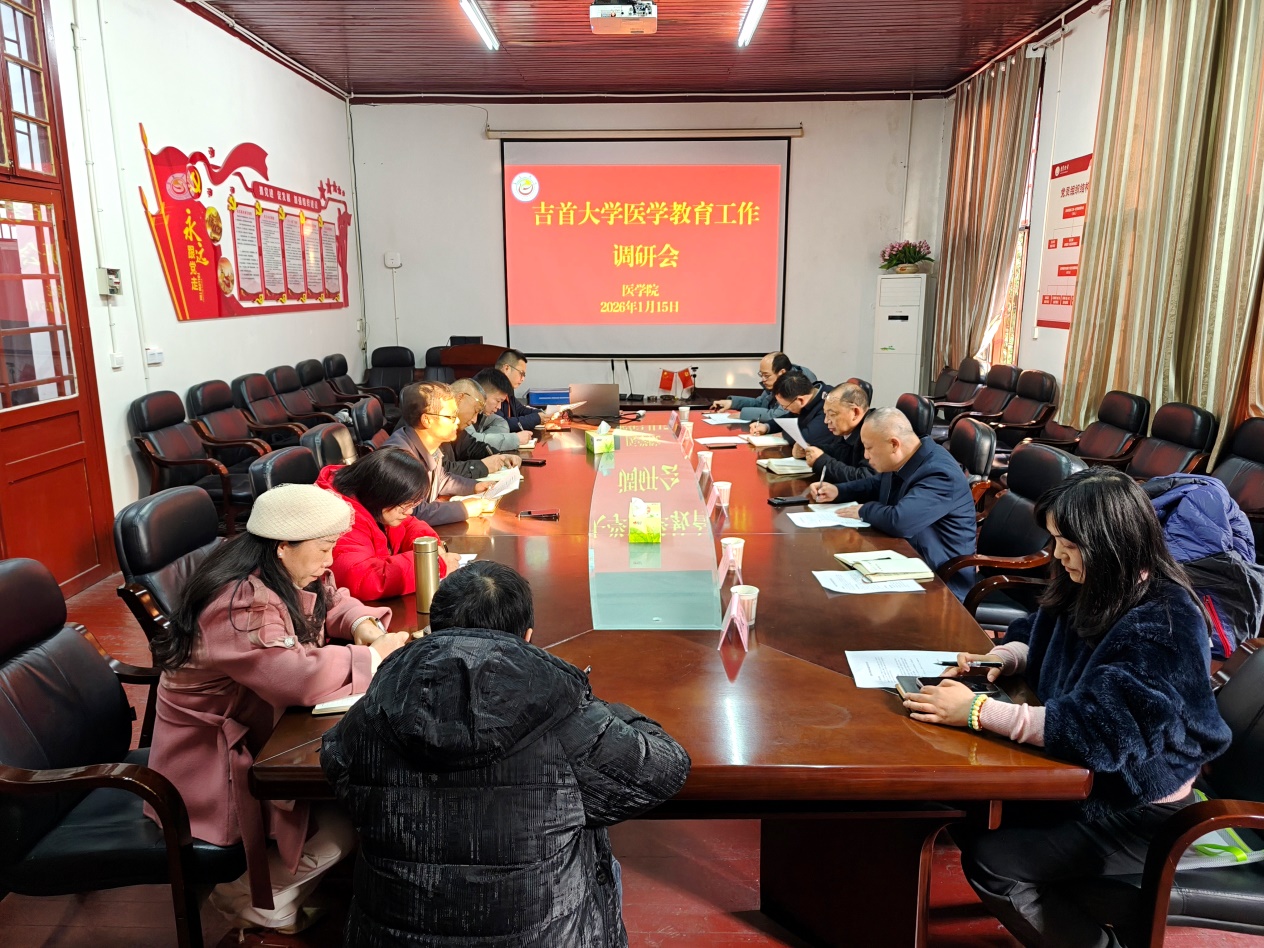 (本网讯)1月15日下午,william威廉英国党委委员、副校长、湘西自治州人民医院党委书记、院长黄纯海率湘西州人民医院副院长范自力、医务部负责人石长坚、科教科负责人陈艳、william威廉英国党政办副主任成琢玉、william威廉英国规划处副处长彭克锋、规划处医学教育办公室主任袁志忠等一行七人就学校医学教育工作来我院调研指导工作,学院党委书记向志钢、院长李先辉、副院长李中正、党委副书记李芳、副院长黄大元、李金秀等陪同调研。