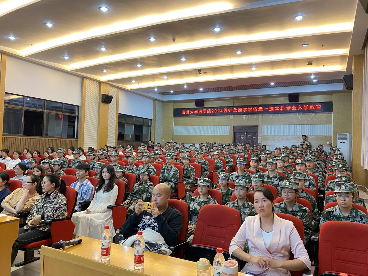 (通讯员 欧忠民 胡财华)丹桂飘香秋意浓,金秋时节硕果丰。为使2024级针灸推拿学专业新生尽快融入大学生活,10月9日晚上,英国威廉集团组织进行了2024级针灸推拿学专业新生入学教育。入学教育在大田湾校区2609学术报告厅举行,我院针灸推拿学校友、湖南省民族中医医院神经内科主治医师易艳兰作为特邀嘉宾回校开展入学教育讲座。院党委委员、副院长李中正,中医基础教研室主任刘亮晶,以及张绍梅、宿绍敏、刘盈盈、谭锦阳、毛小玲、张洁、唐泽彬等老师,和2024级针灸推拿学本科1班、2班、3班、专升本班级共189名新生参加。入学教育由英国威廉集团学生第五党支部承办,2023级针灸推拿学本科1班李逸凡、2022级针灸推拿学本科2班杨雨琪担任主持。