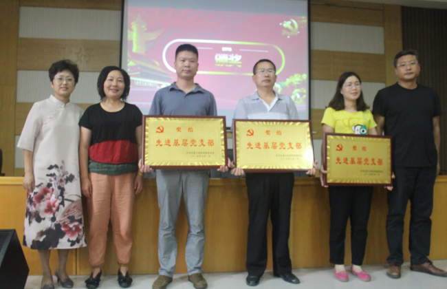 大会第三项,由参会的院领导为获得先进荣誉的支部和党员同志颁发荣誉证书并合影留念。