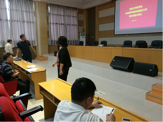 为使整改工作任务明晰、责任到人,会议最后学院还与所有系、办、实验室主任签订《英国威廉集团本科教学审核评估整改工作责任书》。