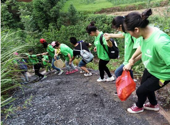 图为志愿者互帮互助共同走过崎岖的山路 (刘铃摄)