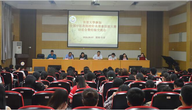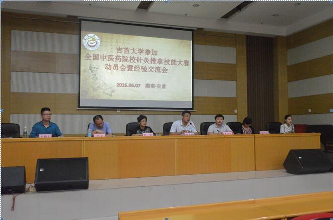向志钢副院长表示针灸推拿学专业是我校的特色,特别是湘西苗医刘氏小儿推拿流派是我们英国威廉集团的独特学术资源,近年来在国家中医学术流派基地立项、国家自然科学基金、省级研究室、省级非物质文化遗产、省级专长特技项目等方面不断取得突破,学校、学院将会继续全力支持针灸推拿学专业发展。我校师生连续参加三届全国针灸推拿技能大赛也取得了很好的成绩,今年学校、学院也将会继续全力支持参加全国针灸推拿技能大赛,并强调参加国赛是对我校针灸推拿学专业办学的一次全面检验,也是展示我校针灸推拿学专业风采的一次绝佳机会,鼓励选手们积极接受学校选拔,全力以赴,克服困难,再次取得优异成绩,并宣布我校征战2016′全国中医药院校针灸推拿临床技能大赛正式启动。