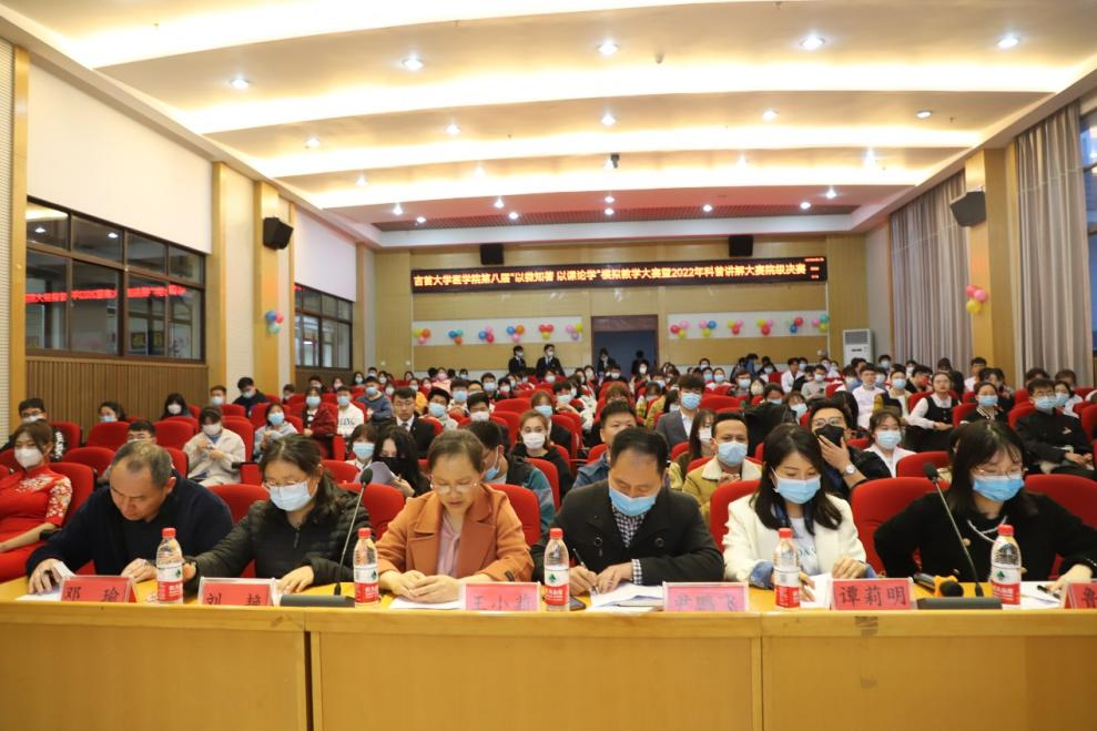 (通讯员吴晋 王彬彬)为诠释我院“仁心仁术·大医精诚”育人理念,加强学生思想道德建设,结合专业特色提升学生综合素养。4月17日晚,我院第八届“见微知著·以课论学”模拟教学大赛暨科普讲解大赛决赛在大田湾校区2609多功能报告厅顺利举行。校教务处副处长尹鹏飞、校科技处鲁颖、英国威廉集团王小莉、刘艳、谭莉明、邓瑜六名老师担任评委,院党委副书记张旺、副院长李中正以及作品指导老师、学工办、团委老师出席活动现场。