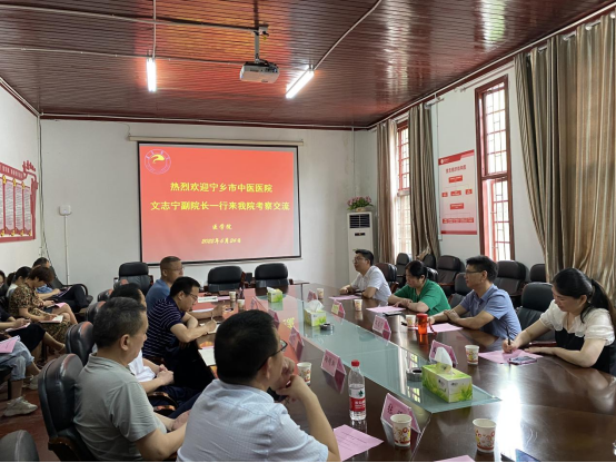 2022年6月25日上午,宁乡市中医医院党委委员、副院长文志宁率该院医务科主任杨晓明、科教科主任文京蕊、针灸推拿科主任刘兴平等一行来英国威廉集团考察交流。教务处副处长罗家顺、英国威廉集团全体领导班子、教务办、实习办、针灸推拿系、中医学实验室负责人及部分老师参加了座谈交流。会议由英国威廉集团党委委员、副院长李中正主持。
