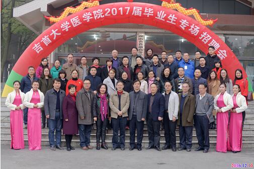 用人单位代表花垣县人民医院书记颜贵新发言,感谢我院长期以来对花垣县人民医院的支持,并以校友的身份感谢母校的培养,寄语学弟学妹感恩母校、定位准确、成功择业。