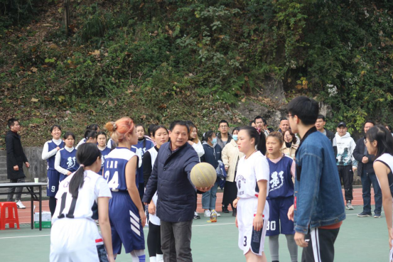图为王群立老师为女篮开球