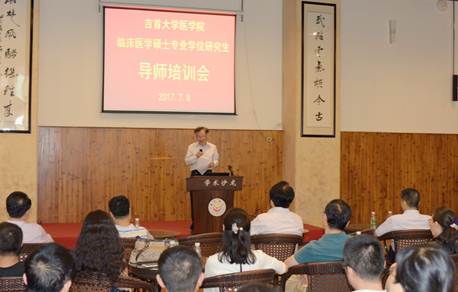 (通讯员印娜楚婷)我院于7月8日上午8:30在砂子坳校区研究生学术沙龙室隆重举行2017年临床医学硕士专业学位研究生导师培训会。