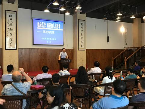 中南大学湘雅二医院肖涛教授做了题为“临床医学科研的几点思考”的主题讲座,建议医生在做好临床工作的同时,多思考一些,不要满足于当一名医生,而要成为一位临床医学家。