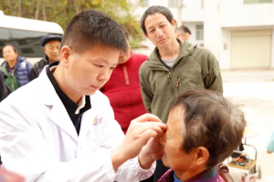 图为李中正为村民们进行检查