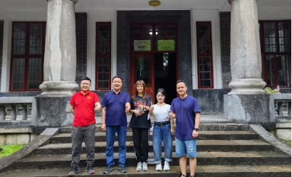 图为院领导老师和西部计划志愿者沙拉古丽、卞佳月合影