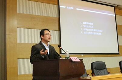 陈正英隆重介绍了闫憬鹏博士,并代表学院表示热烈欢迎。闫憬鹏博士主要分享了他在上大学时的一些创新创业经历、经验以及现在的一些成就。一进入到大学,他就定下清晰的目标:大一要赚年薪四十万,并且努力朝它奋斗,一边认真学习,一边进行创业,很快他就实现了目标,现今他的收入远远超过当时的预定目标。同时他强调大学生不仅仅只是努力学习,也要有自己的想法并将其付诸于实践,大胆创新,提高自己的创新创业意识。此次讲座的核心之处也就是闫博士贯穿始终要送给我们的四句话,也是他自己在事业上成功的秘密武器:1、四重思维模式;2、专业胜于关系;3、做事出成果是最好的途径之一;4、胆识与思想比勤奋更重要。在闫憬鹏博士的整个讲话过程中,他的幽默风趣的宣讲方式,让同学们提起兴趣聆听并且受益匪浅。台下掌声也是连绵不断。