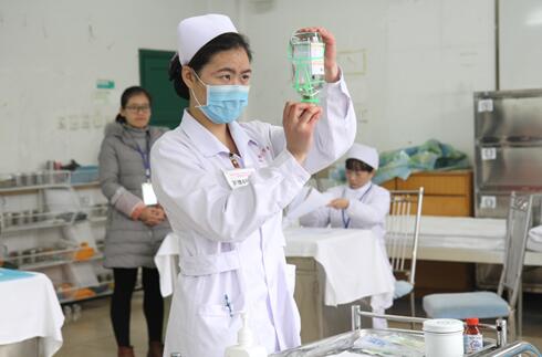 图为护理选手进行输液准备