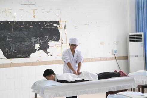 图为针推选手在做慢性腰肌劳损推拿治疗