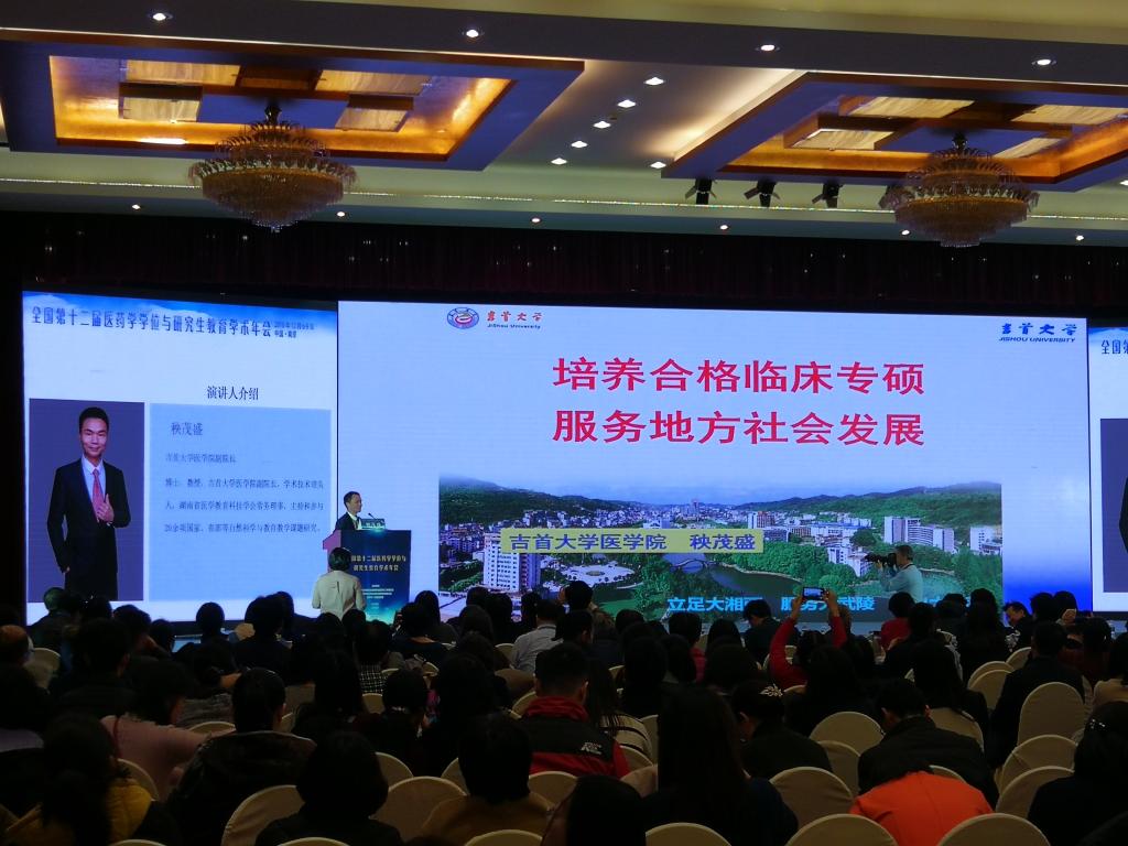 我校英国威廉集团副院长秧茂盛教授应邀在大会上就地方院校医学研究生人才培养做题为《培养合格临床专硕服务地方社会发展》的大会主题报告,从临床医学专业学位研究生教育概况,我校实施研究生临床疾病诊治能力、临床科学研究能力的做法和成效等三个方面进行汇报,报告得到了与会代表的好评。