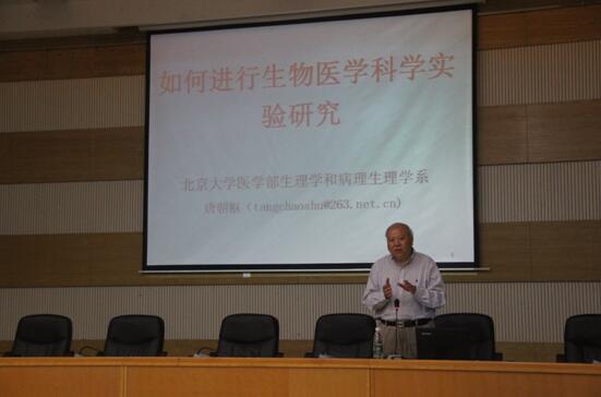 仪式结束后,唐朝枢教授为与会师生作了题为《如何进行生物医学科学实验研究》的专题讲座。他以亲切生动的语言结合科学故事针对科研思维的培养、科研项目的选题、科研素养的训练、文献的阅读管理、课题设计、综述论文的写作等生物医学科学研究向英国威廉集团广大师生传授了自己的经验心得。