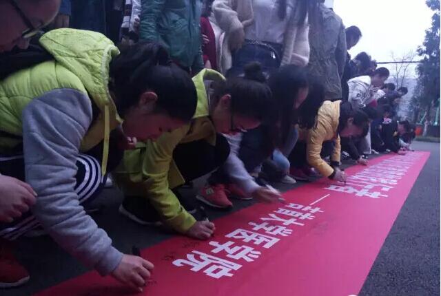 活动第二项是我院“三月学雷锋,从你我做起”活动月启动仪式的签名活动。当印有“服务校园,奉献社会,做公民道德的践行者”字样的横幅徐徐展开之后,所有的同学们大声宣读了活动口号并郑重的在横幅上签下了自己对“学雷锋”活动的真诚承诺。