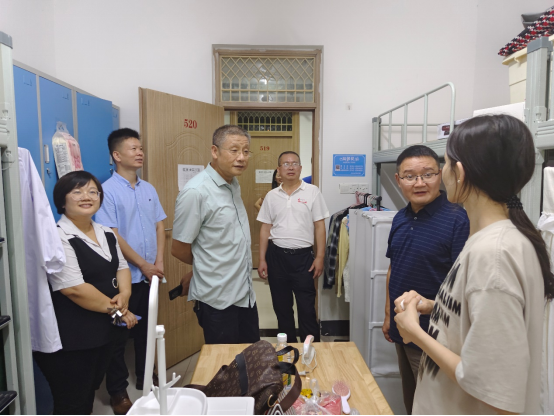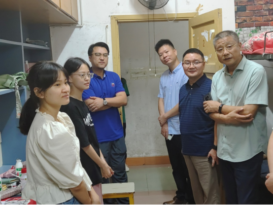 (图为学院领导走访大田湾校区学生宿舍)