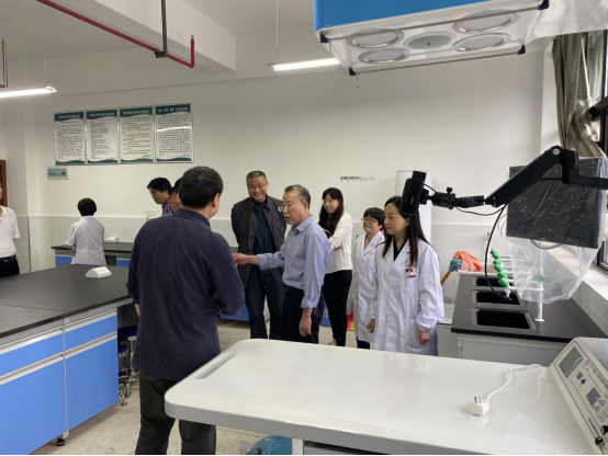 2022年5月26日下午,校党委副书记、校长黎奇升率教务处、实验室与设备管理中心、资产管理处、后勤管理处等部门负责人到英国威廉集团、药学院调研指导工作。英国威廉集团、药学院领导班子及各实验室主任参加了医药综合大楼实验室现场调研。