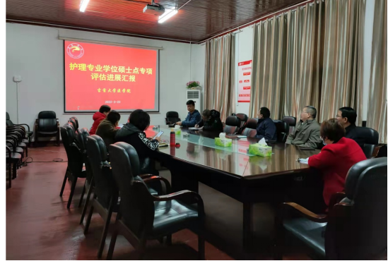 护理系主任李金秀分别就学位点专项评估报告、专项评估工作进展情况、自评材料准备情况、存在问题及下一步工作计划等内容进行汇报,包含了学位授权点基本情况,如基地实践、师资水平、人才培养、管理体系、学位授予和培养成效等六方面的内容。随后与会人员对自评材料撰写、佐证材料准备、下一步工作安排等内容进行了交流讨论,特别是陈正英教授,凭借着丰富的专业背景和工作经验,对自评报告给予了建设性的意见。