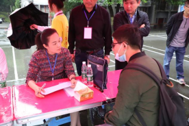 当日气温寒冷,阴雨延绵,仍有四十家省内外的单位到场。前来应聘的同学,手撑雨伞,向心仪的单位投放简历;学院领导老师咨询各单位的用人需求,积极推荐毕业生。